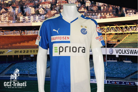 Ducksch Anliker und Priora hiessen die beiden Brust Sponsoren der Trikots des Rekordmeisters. Jeder Sponsor zierte so, je eine Halbzeit das GC Trikot.